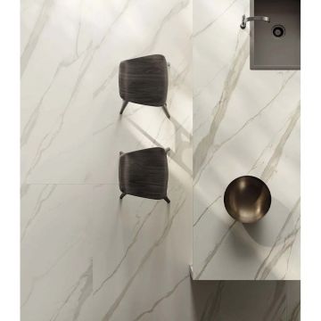 Керамогранит Italon Метрополис Калакатта Голд - это идеальное сочетание стиля, элегантности и функциональности, которое станет великолепным решением для вашего интерьера. С размерами 120х278 см и толщиной всего 6 мм, этот керамогранит не только выглядит впечатляюще, но и обладает высокой прочностью и долговечностью.