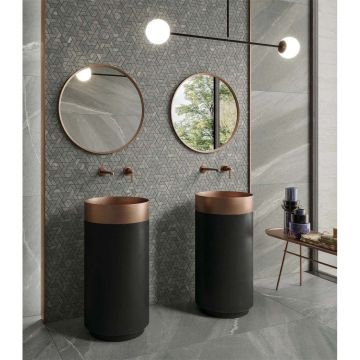 - Современный дизайн: Элегантный графитовый цвет и текстура мозаики придают помещению утончённость и изысканность, позволяя сочетать её с различными стилями интерьера.